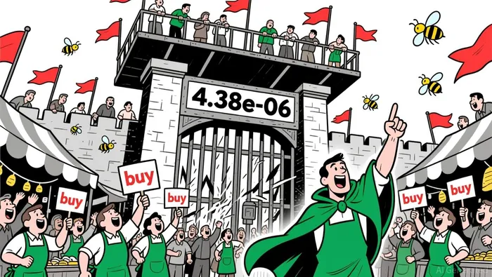 • Price tested key resistance at 4.38e-06, forming a bullish consolidation pattern.