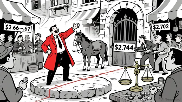 20-period and 50-period moving averages on the 5-minute chart converged near $2.695–2.70, suggesting consolidation. RSI remained in the 40–60 range, indicating a balance between buying and selling. MACD showed no clear divergence but remained in a tightening histogram phase, hinting at potential reversal.