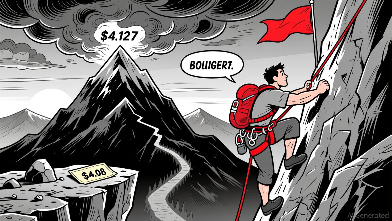 • Price action shows a bullish rebound from a key support at $4.08, with a 61.8% Fibonacci level at $4.127 acting as resistance.