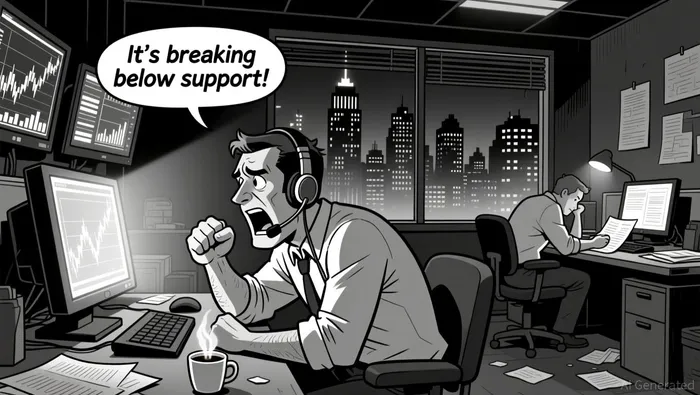 On the 5-minute chart, the 20-period and 50-period moving averages have been bearishly aligned since the breakdown began.
