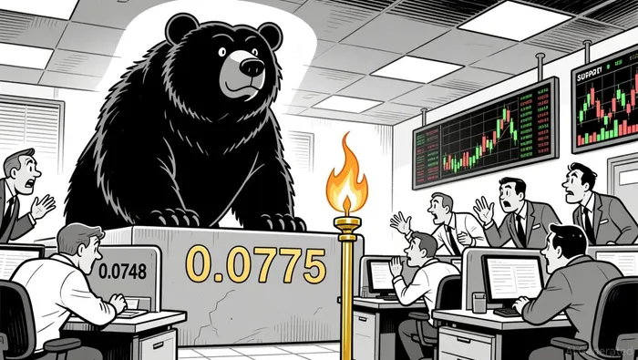 Price action showed a bearish engulfing pattern during the early session, confirming a shift in sentiment. A doji at 0.0771–0.0771 suggested indecision near 0.0775. Key support levels were tested at 0.0765 and 0.0748, with the latter holding strongly in the final hours.