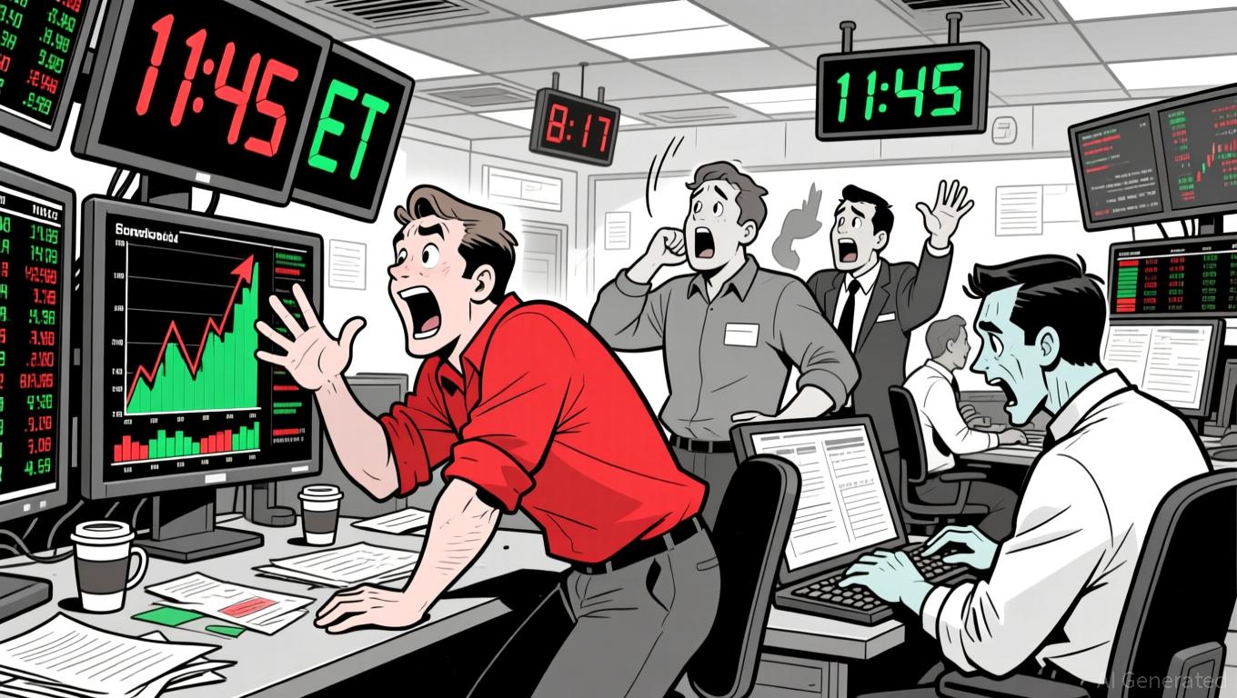 Volatility was compressed before the sharp 11:45 ET move, with price trading near the lower band for much of the session. The bands expanded as the price surged back up, indicating renewed short-term volatility.