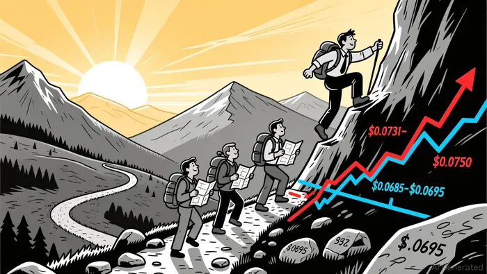 Price appears to be testing the $0.0731–$0.0750 resistance zone, and a confirmed break above could target $0.0756–$0.0779. However, overbought conditions and a potential pullback to Fibonacci support levels suggest caution. Investors should watch for a reversal above $0.0750 or a rejection below $0.0695 to gauge next-day direction.