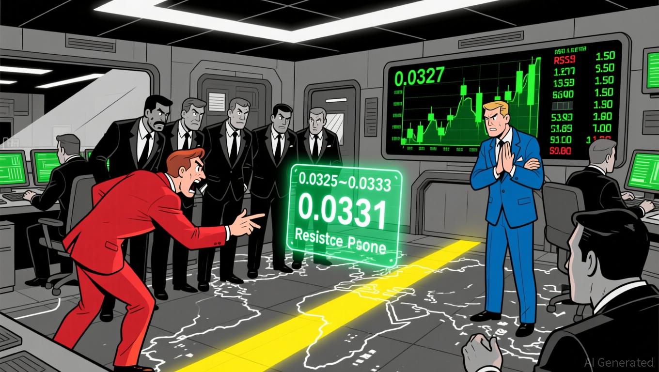 • Key support at 0.0327 and resistance at 0.0331 tested repeatedly, with failed breakouts.