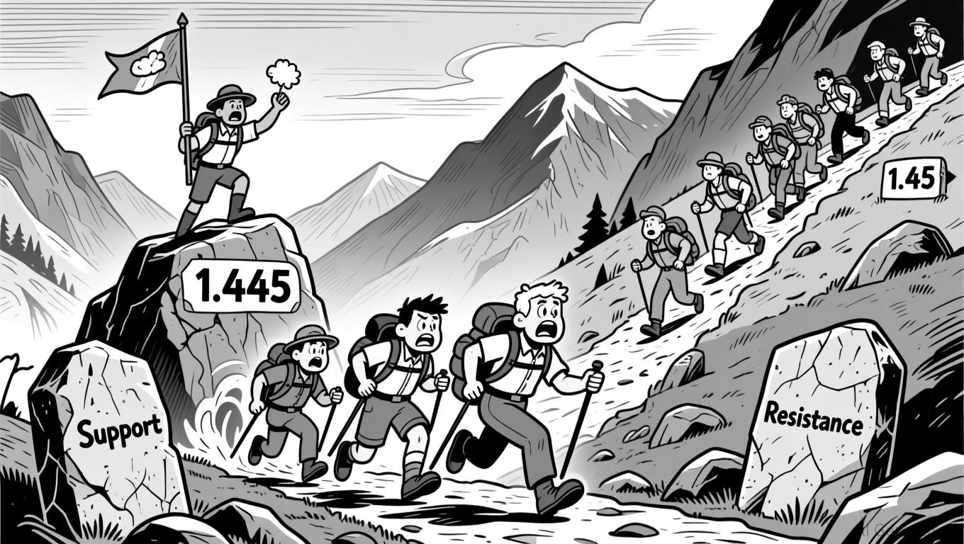 • Price fell to a 24-hour low of 1.445 before stabilizing near 1.455 with consolidation.
