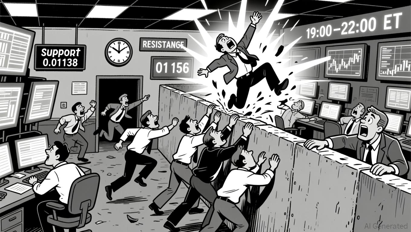 The 5-minute chart displayed multiple failed attempts to break above the 0.01156 resistance, with a bearish engulfing pattern at 2025-12-08 19:00 ET suggesting short-term selling pressure. A potential support zone formed between 0.01138 and 0.01140 as price found multiple bounces in the last 48 hours.