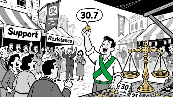 The price has shown a strong magnetism to $0.306–$0.307, with multiple closes and opens clustering in this range. A key support level appears to be forming at $0.304, where price tested twice without breaking below. Resistance is consolidating at $0.309–$0.311, with a bearish reversal candle observed at $0.311 in early afternoon trading.