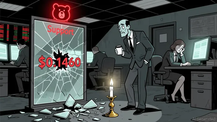 A doji appeared near $0.1453 in the early morning hours, indicating a temporary pause in the bearish trend but failed to trigger a reversal.