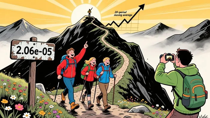 The price formed a bullish channel on the 5-minute chart, with 2.06e-05 acting as a psychological resistance level. A breakout occurred during the early morning session, confirming a shift in momentum. The 20-period moving average on the 5-minute chart moved upward, aligning with the trend.