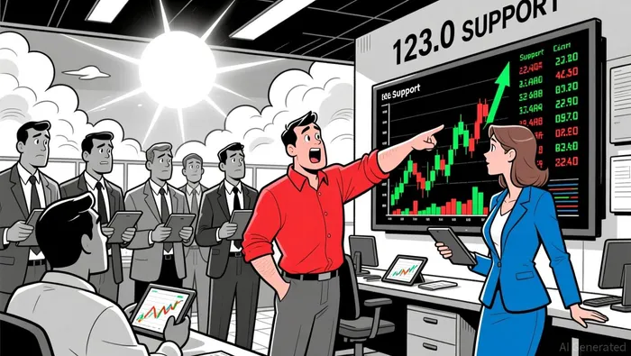 engulfing pattern formed around 12:45–13:00 ET, signaling potential short-term buying pressure. Key support levels at 123.0 and 122.0 were tested multiple times, while resistance emerged at 126.0 and 128.0. Moving Averages and Bollinger Bands