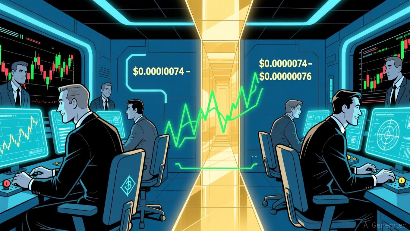 The pair consolidated tightly between $0.00000074 and $0.00000076 throughout the day, with no notable candlestick patterns emerging. A brief 0.14% bullish reversal was observed at 02:15 ET but lacked follow-through. The $0.00000074 level acted as a firm support, while $0.00000076 offered mild resistance.