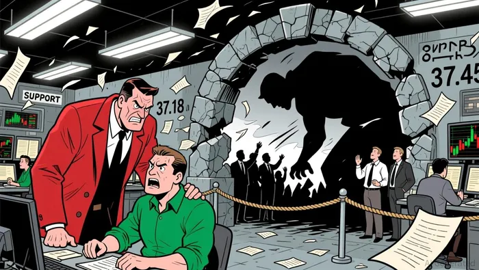 Price formed a bearish engulfing pattern at 05:30 ET, signaling potential downward pressure. A key support level appears to form near 37.18, with resistance likely near 37.45.
