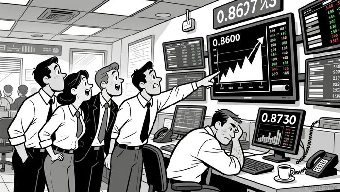 The pair saw a defined range between 0.8482 and 0.8755. A bullish engulfing pattern appeared near 0.8600 during the late-night consolidation, while the upper resistance at 0.8750 was briefly tested but not breached. A bearish doji formed at 0.8730 during the early morning, signaling indecision.