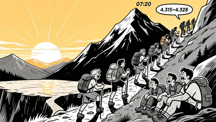 • Price tested support near 4.306 before rebounding and consolidating in a 4.315–4.328 range late in the session.