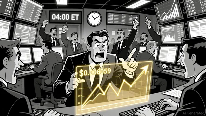 Volatility expanded sharply after 04:00 ET, with the 20-period Bollinger Band width widening by over 30%. Price reached +1σ on the 5-minute chart at $0.006059–$0.006059, suggesting overextended conditions that could trigger a consolidation phase.