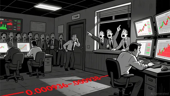 The 5-minute chart revealed a bullish engulfing pattern at 19:00 ET, following a sharp decline to 0.00093. A key support zone appeared at 0.000936–0.000938, reinforced by repeated bounces and volume spikes. A doji formed at 23:45 ET, suggesting short-term indecision as buying pressure stalled before the close.