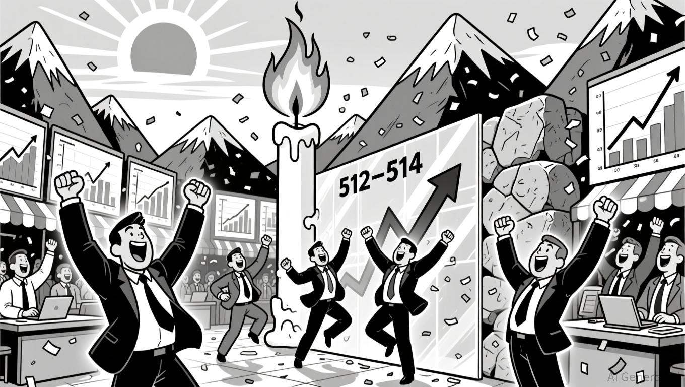 The 24-hour period saw a significant bullish reversal, with price rising over 4% from 483.13 to 518.46. A bullish engulfing pattern formed around 506.83, with a large candle opening at 506.9 and closing at 509.79. The move pushed price above a key resistance cluster at 512–514 and into fresh territory.