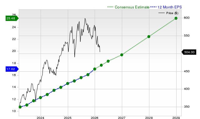 For the current fiscal year, the consensus earnings estimate of $19.39 points to a change of +14% from the prior year. Over the last 30 days, this estimate has changed +0.3%.