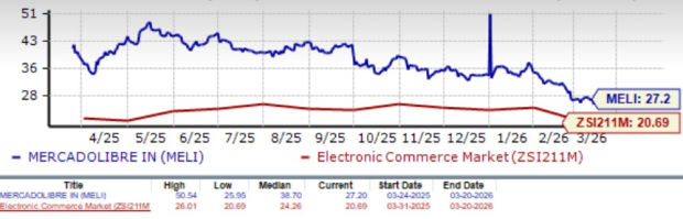 From a valuation standpoint, MELI trades at a forward price-to-earnings (P/E) of 27.2X, higher than the industry’s 20.69X. The company carries a Value Score of B.