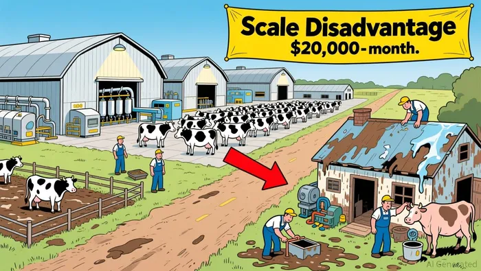 The operational challenges facing Becker and its peers are rooted in collapsing margins and an uneven playing field. For mid-sized dairy processors in the U.S., margins have fallen to $11.55 per hundredweight in 2025-a 26% drop since September 2024. At this rate, a mid-sized operation could lose approximately $20,000 per month. In contrast, large dairies with 3,000-cow operations enjoy scale advantages of $4–$5/cwt, allowing them to absorb cost pressures that mid-sized players cannot according to industry analysis.