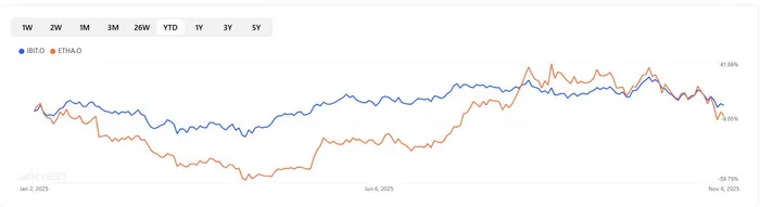 The iShares BitcoinBTC-- Trust (IBIT) remains the largest crypto ETF with $85.5 billion in assets, but is up only 7.7% year-to-date, having given up much of its earlier gains. The iShares EthereumETH-- Trust (ETHA) has also lost nearly all its 2025 gains, reflecting the broader market pullback. Investor sentiment has turned cautious, with the crypto fear and greed index shifting to "fear" as outflows from spot Bitcoin and Ether ETFs continue.
