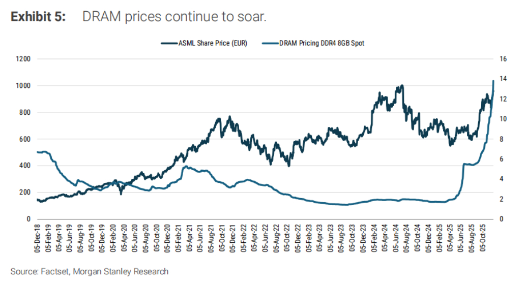 Morgan Stanley’s channel checks indicate that demand remains robust across leading memory producers and major customers. Analysts expect ASML to highlight demand strength exceeding prior guidance in its upcoming earnings report.