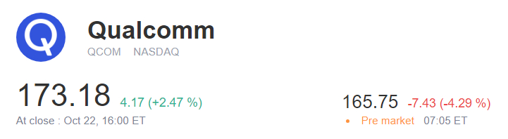 Qualcomm shares dropped nearly 4% in pre-market trading. Arm has given Qualcomm a mandated 60-day notice of the cancellation of their so-called architectural license agreement. The contract allows Qualcomm to create its own chips based on standards owned by Arm.