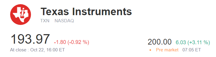 Texas Instruments rose in premarket trading, after the chipmaker reported third-quarter income that topped analysts' expectation.