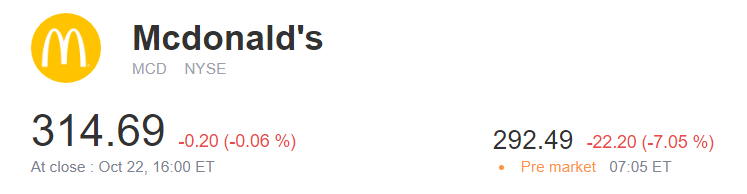 McDonald's dropped 6.5% in pre-market. E. coli, a type of bacteria that can cause serious stomach problems, has been found in McDonald's Quarter Pounder sandwiches, the CDC announced on Tuesday.