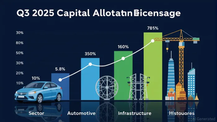 Capital flows in Q3 2025 have increasingly favored infrastructure, with global energy and infrastructure investment reaching $1.1 trillion in Q4 2024—a 15% year-over-year increase [2]. This momentum is driven by infrastructure’s resilience against equity market volatility and its alignment with long-term energy transition goals. For example, grid modernization and AI infrastructure projects under the Bipartisan Infrastructure Law have spurred core durable goods orders (excluding transportation) to rise 1.1% in July 2025 [1]. In contrast, the automotive sector faces headwinds: transportation equipment orders fell 10.3% monthly, dented by tariffs, high financing costs, and supply chain disruptions [1].
