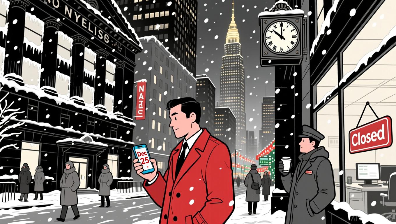 U.S. equity markets, including the New York Stock Exchange (NYSE), will observe early closures on December 24 and December 26, with trading halting entirely on December 25 for Christmas Day