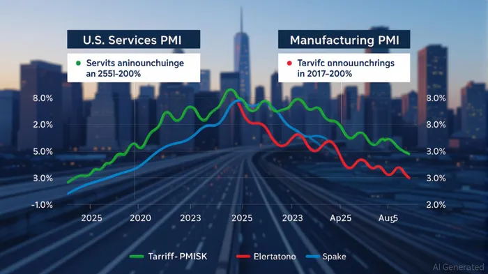 The U.S. economy in 2025 is marked by a stark divergence between the services and manufacturing sectors. The Services PMI® has remained in expansion territory for 13 of 14 months, hitting 52% in August 2025, driven by robust business activity (55%) and new orders (56%) [1]. This resilience contrasts sharply with the Manufacturing PMI, which has contracted for six consecutive months, registering 48.7% in August 2025. Tariffs on goods from China, Mexico, and Canada have exacerbated manufacturing woes, with respondents citing higher costs, supply chain disruptions, and reduced competitiveness [3].