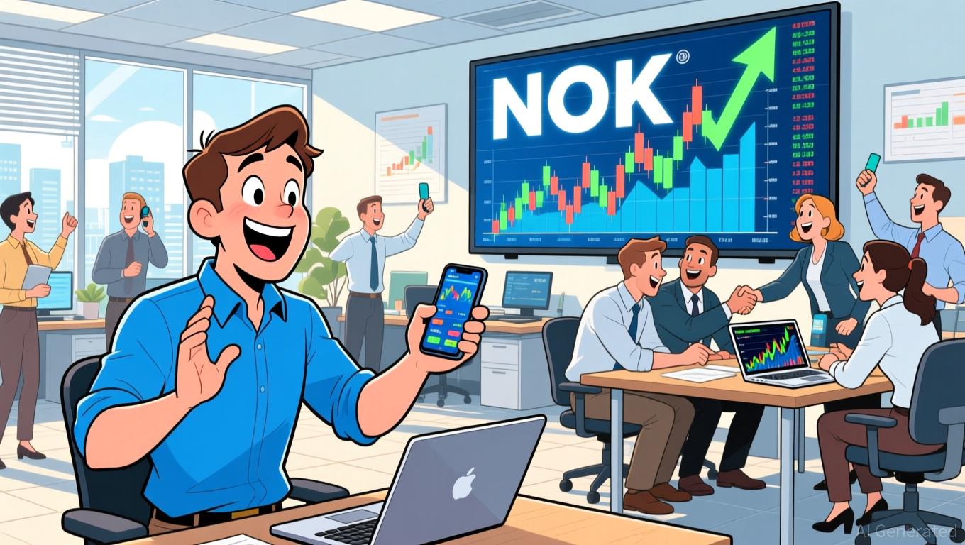 Nokia (NOK) closed the most recent session with a 3.93% gain, surging from a low of $6.60 to a high of $6.77 and settling at $6.61. This sharp reversal follows a prior session decline of 2.45%, suggesting a potential short-term bottoming process. The price action indicates a bullish engulfing pattern on the daily chart, with the closing price above the previous session's high, signaling strong buying pressure.