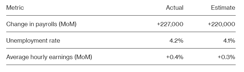 Nonfarm Payrolls Beat Forecast at 227K, Unemployment Rate Hits 4.2%
