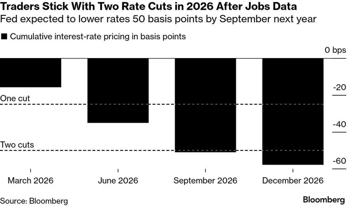 Markets currently expect the Federal Reserve to cut rates twice in 2026. However, the December dot plot indicates that FOMC officials anticipate only one rate cut next year.