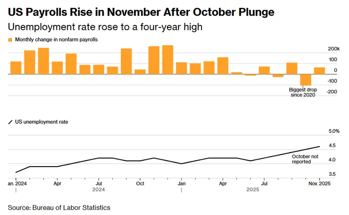 However, the unemployment rate unexpectedly rose to 4.6% in November, above the expected 4.5%, marking the highest level since September 2021. October’s unemployment rate was permanently unavailable due to the government shutdown.