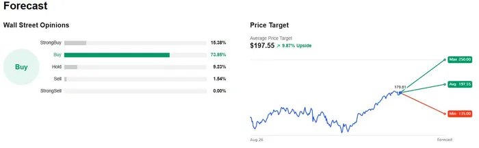 Analyst targets have raced higher: over the last month, the Bloomberg-tracked average for Nvidia rose 7.7%, the fastest pace this year. Notable recent hikes: Piper Sandler: $180 → $225, UBS: $175 → $205, Morgan Stanley: $170 → $200.