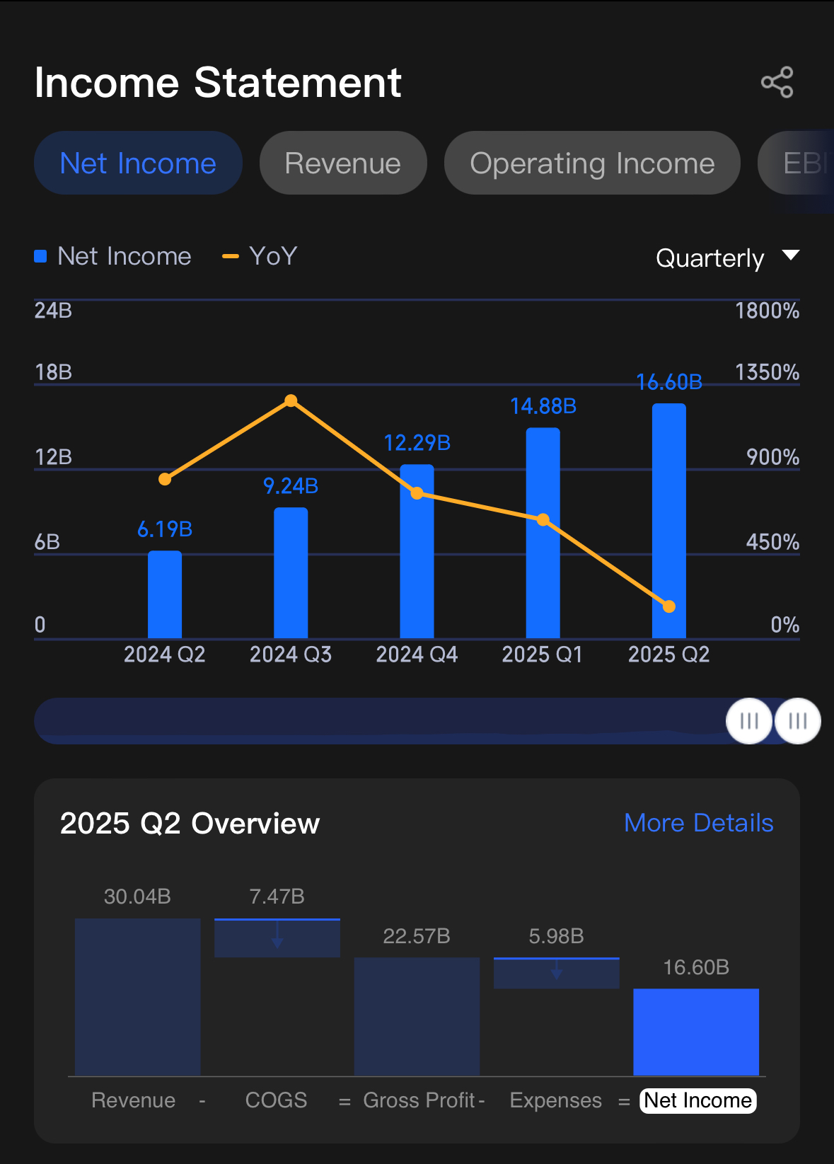 In addition to its data center business, Nvidia's gaming business also performed well. In the second quarter of 2025, gaming business revenue reached $2.88 billion, a 15.83% increase year-on-year. The release of new products and increased market demand drove this growth. Although the gaming business's share of Nvidia's overall revenue is gradually decreasing, it remains an important part of the company's income.