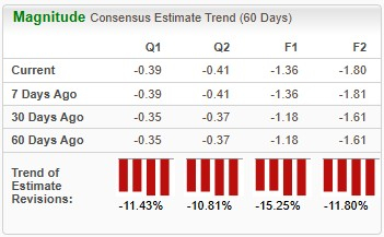 Devoid of a marketed product, the consensus estimate for GPCR’s 2026 bottom line suggests loss per share to narrow by more than 4% year over year. Loss estimates for 2026 and 2027 have widened over the past 60 days.