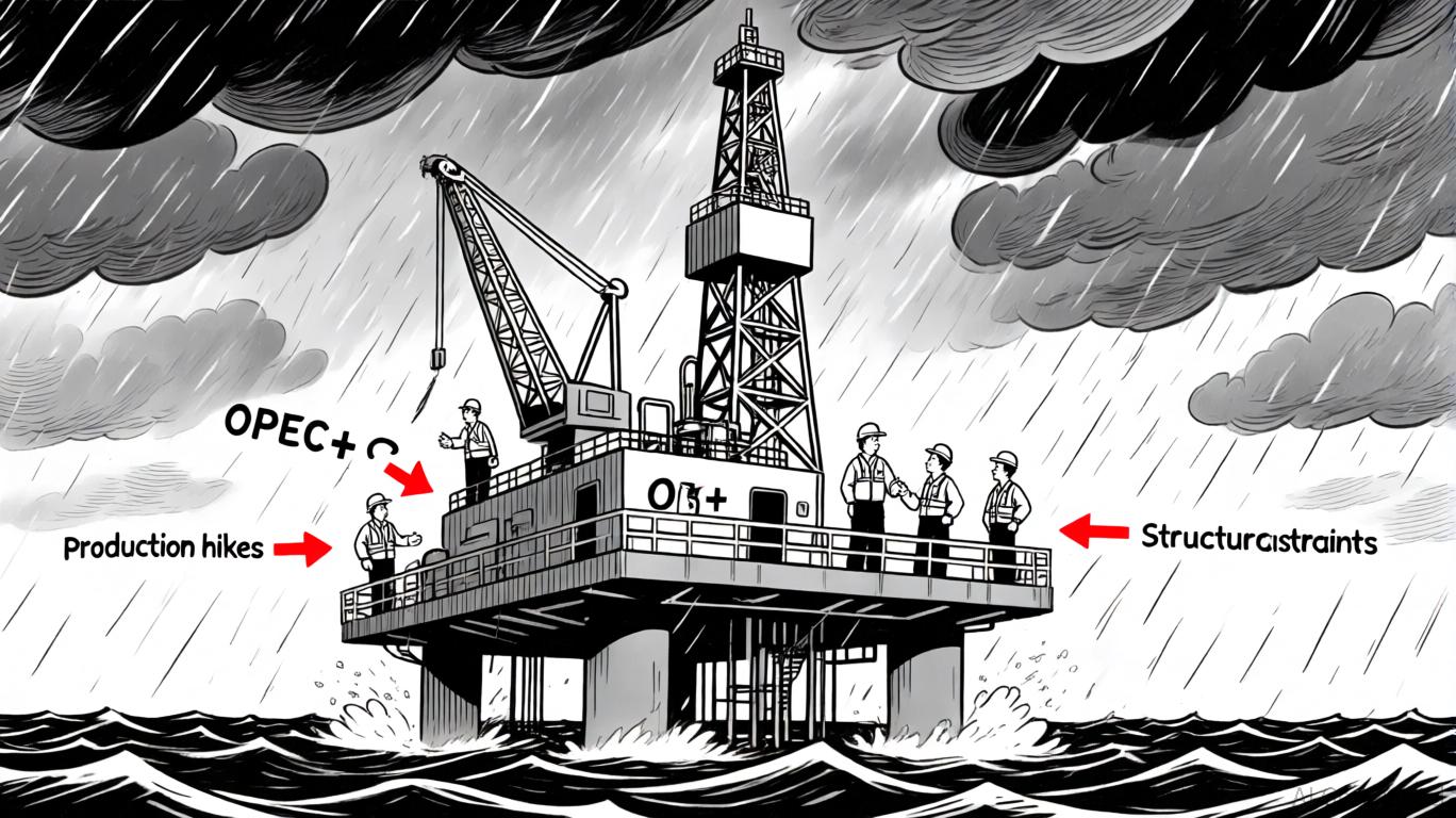 OPEC+'s September 2025 output hike of 547,000 bpd marked the final step in reversing a 2.2 million bpd reduction from April 2023, while a smaller 137,000 bpd increase was planned for October 2025[1]. Yet, as of August 2025, the group had only achieved 75% of its targeted production hikes since April, leaving it 500,000 bpd short of agreed levels[3]. Analysts attribute this shortfall to structural capacity constraints in key members like Algeria, Oman, and Kazakhstan, as well as the need for compensatory cuts to offset prior overproduction[3].