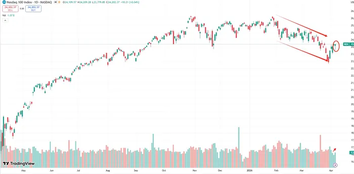 The Nasdaq 100 has already staged a sharp rebound from the March 30 low as Trump repeatedly signaled progress with Iran, despite Tehran's dismissive stance. The situation escalated further when Trump issued an ultimatum warning that "whole civilization" could be at risk if no deal was reached, only to pivot again toward a temporary ceasefire after the market closed. This reversal fueled a surge in futures, reinforcing how sensitive the market remains to headline shifts rather than fundamental change.