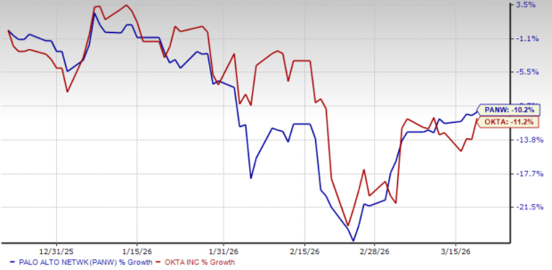 Palo Alto Networks PANW and Okta Inc. OKTA are both U.S.-based cybersecurity companies that specialize in protecting enterprises from evolving digital threats. While PANWPANW-- focuses broadly on next-gen firewalls, cloud security and AI-driven threat detection, OKTAOKTA-- focuses on identity and access management, providing cloud-based solutions that help businesses safeguard user data.