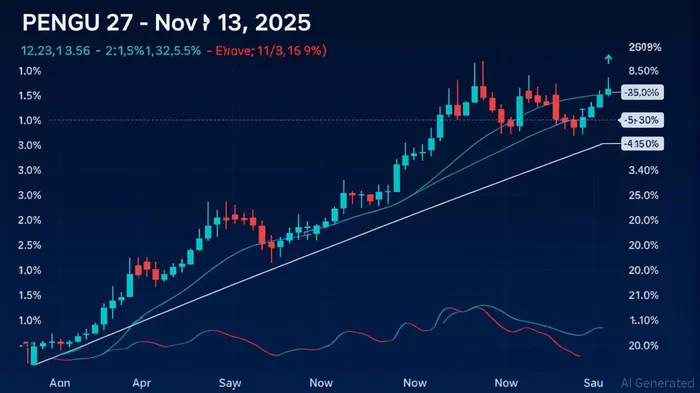 The broader crypto ecosystem also influences PENGU's trajectory. The launch of CMC20, a DeFi-native index token on BNBBNB-- Chain, has introduced new liquidity and trading strategies, potentially drawing attention away from niche tokens like PENGU. Meanwhile, Pudgy Penguins NFT sales-a key driver of PENGU's utility-dropped 36.87% to $2.79 million in the week prior to November 17, 2025, exacerbating downward pressure on the token. This decline aligns with a 5.4% drop in global NFT volume, reflecting broader market fatigue.