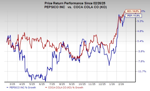 In the past year, shares of PepsiCo have risen 11.9% compared with Coca-Cola’s rally of 14%. Both companies have demonstrated resilience amid a challenging consumer backdrop, reflecting investor confidence in their defensive business models and global brand strength.