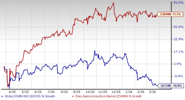 Qualcomm shares have lost 18.8% over the past year against the industry’s growth of 71.1%.