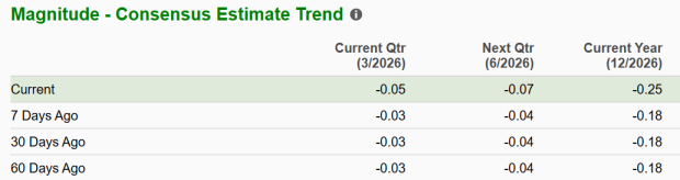 Over the past 30 days, its loss per share estimate for 2025 has increased to 25 cents from 18 cents.