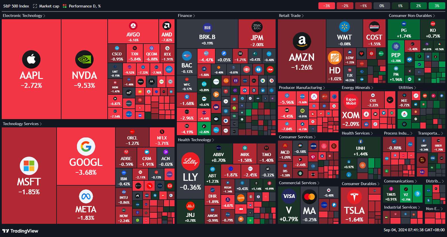 September is typically not a good month for stocks, but many did not expect it to be this brutal. After returning from the Labor Day holiday, U.S. stocks plummeted across the board on Tuesday, with S&P 500 falling by 2% and the Nasdaq dropping by over 3%. The semiconductor sector was hit particularly hard, with the VanEck Semiconductor ETF falling by 7.5%, marking the largest decline since March 2020. Nvidia dropped nearly 10%, losing nearly $280 billion in market value, setting a record for the largest single-day loss in U.S. stock history. What exactly happened?