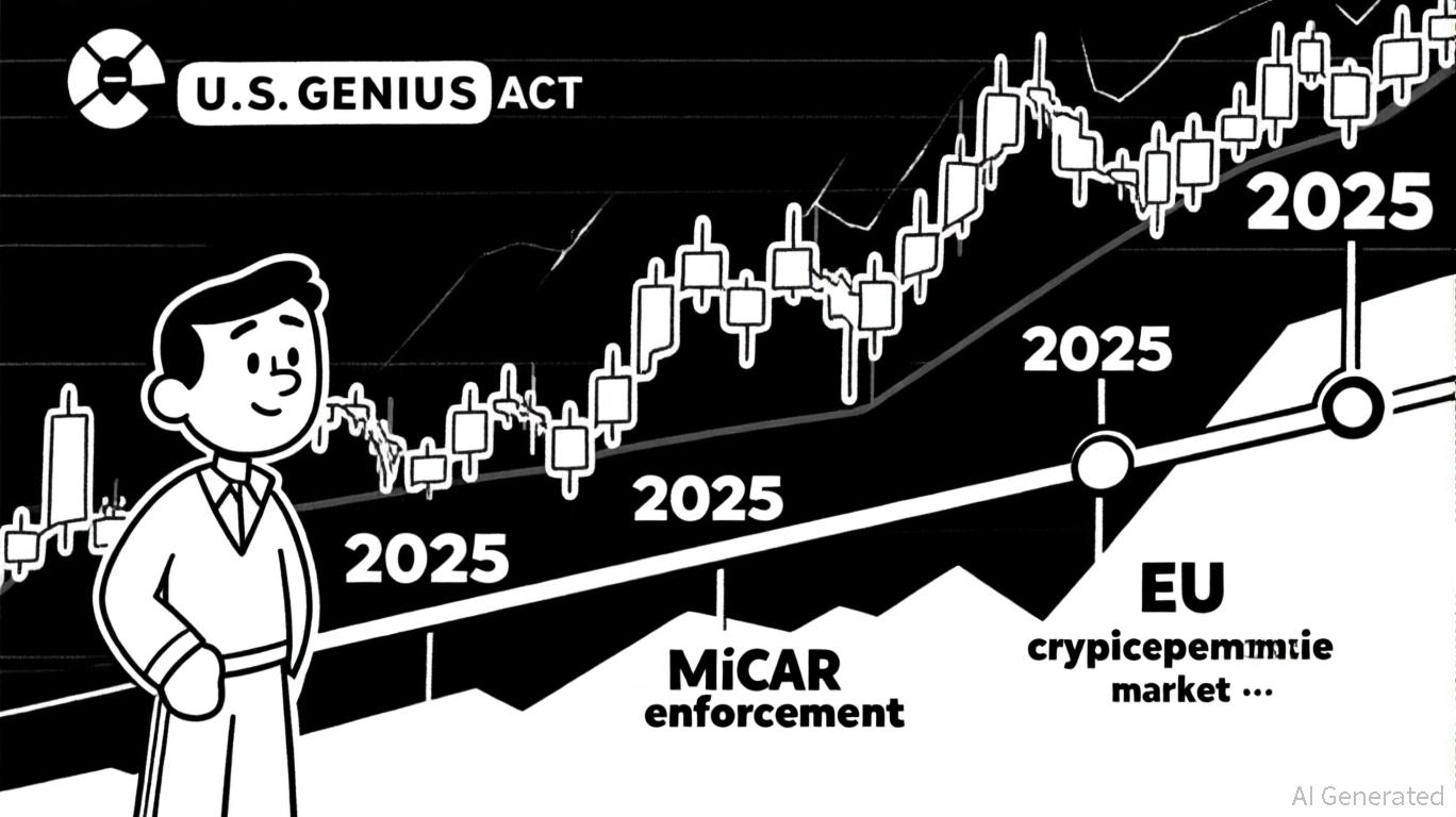 . Platforms like capitalized on this momentum, offering 4.1% annual rewards on holdings to incentivize adoption, as reported in a . For investors, this signals a strategic entry window: stablecoins and regulated exchanges are now positioned as safe-haven assets within the crypto ecosystem, particularly as U.S. Treasuries see increased demand due to stablecoin reserve requirements, according to a .The European Union's Markets in Crypto-Assets Regulation (MiCAR), enforced in January 2025, has redefined the continent's crypto landscape. By imposing stringent reserve requirements on stablecoins and enabling cross-border operations for compliant Virtual Asset Service Providers (VASPs), MiCAR has fostered a more transparent market. Over 65% of EU-based crypto businesses achieved compliance within six months, while institutional investors increased holdings by 32%, according to