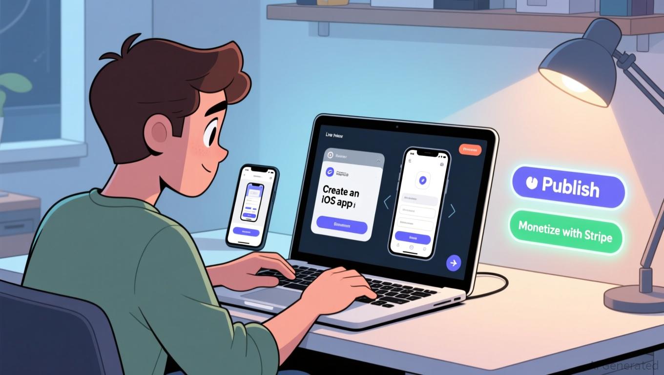 allows users to create and publish monetizable iOS apps using only natural language prompts.