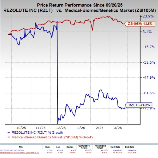 In the past six months, shares of Rezolute have plunged 71.2% against the industry’s 13.5% growth.